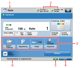 oben rechts im Grundfunktionen-Display [Scannen und Senden], Grundfunktionen-Display [Fax], Senden-Display [Zugang gesp. Dateien] und Senden-Display [Fax/I-Fax Eingangsbox] speichern. |