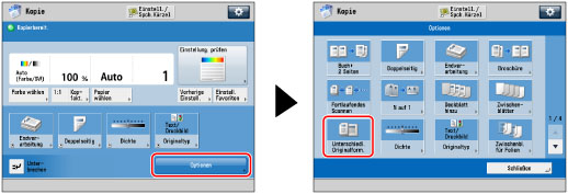 2] zusammen mit [Unterschiedl. Originalform.] verwenden, werden die Kopien als einseitige Kopien auf ihrer Größe entsprechendem Papier ausgedruckt. |