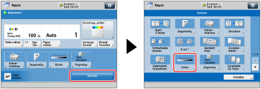 Wenn Sie die Hintergrunddichte durch Drücken von [Justieren] für <Hintergrunddichte> justieren möchten, wird die Einstellung [Auto] aufgehoben. Entsprechend werden beim Drücken von [Auto] beim Vornehmen manueller Einstellungen in [Justieren] Ihre Einstellungen aufgehoben. Das System justiert automatisch die Dichte entsprechend dem Hintergrund.