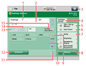 Durch Berühren dieser Taste rufen Sie die letzten drei Sendeaufträge, einschließlich Empfänger, Scaneinstellungen und Sendeeinstellungen auf.
