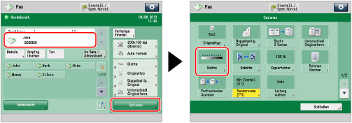 Wählen Sie den Empfänger → Berühren Sie nacheinander die Tasten [Optionen] → [Dichte].
