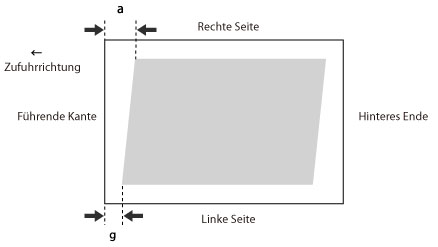 Diese Einstellung erlaubt es Ihnen, die Bildform durch Entzerren der Länge von 'a' und 'g' zur führenden Kante des Papiers zu korrigieren, wenn das Bild wie ein Parallelogramm gedruckt wird.