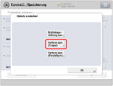Berühren Sie nacheinander die Tasten [Details einstellen] → [Verform.korr. (Trapez)].