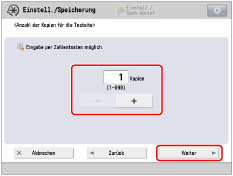 Geben Sie die Zahl der zu erstellenden Testseiten ein → Bestätigen Sie durch Berühren der Taste [Weiter].