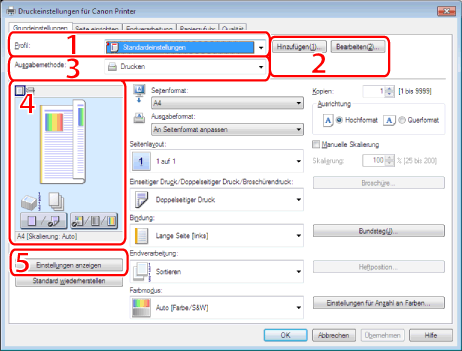 Sie können ein Profil auswählen, um dieselben Druckeinstellungen mehrmals verwenden zu können (vgl. "Profil für den Druck auswählen").
