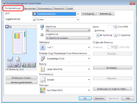 Die Anzeige kann sich je nach Betriebssystem sowie Typ und Version des Druckertreibers unterscheiden.
