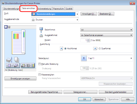 Die Anzeige kann sich je nach Betriebssystem sowie Typ und Version des Druckertreibers unterscheiden.