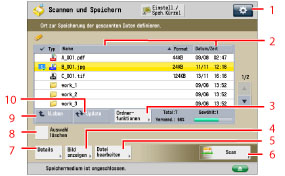 Nähere Informationen zur Einrichtung von Ordnern, Überprüfung von Detailinformationen zur Datei und Bearbeitung/Löschung von Dateien finden Sie im Abschnitt "Zugang zu gespeicherten Dateien".