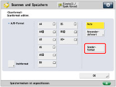 Berühren Sie die Taste [Scanformat] → Wählen Sie ein Scanformat.