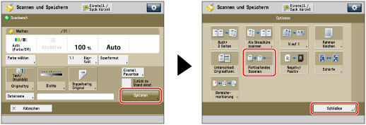 Sie können die unter [Einstell. ändern] angezeigten Einstellungen nur ändern, wenn die Funktion <Fortlaufendes Scannen> aktiviert ist. Alle Scaneinstellungen müssen im voraus programmiert werden.