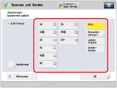 → [Scannen und Senden] → Berühren Sie die Scanformat-Taste.