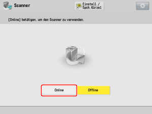 Wenn Sie die Taste [Offline] während des Scanvorgangs berühren, wird ein Dialogfeld angezeigt, um zu bestätigen, dass der Scanvorgang angehalten werden soll. Klicken Sie auf [Ja], um den Scanvorgang anzuhalten und den Scanner offline zu schalten.