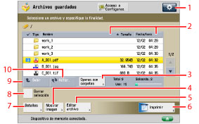 [Fecha/hora] Se pulsa para ordenar los archivos por fecha/hora en orden ascendente o descendente. |