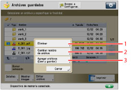Para ver el procedimiento acerca de [Agregar archivos (Leer y guardar)] y conocer las instrucciones acerca del manejo de la pantalla de lectura, consulte "Agregar un archivo (Leer y guardar)" y "Flujo de operaciones de leer y guardar".