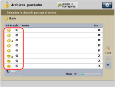 para desplazarse por los archivos guardados.|