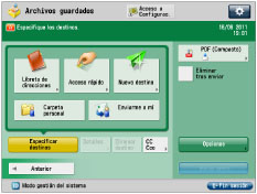 Si el destino seleccionado es un grupo de direcciones que contiene un buzón, el archivo no se enviará a (ni se guardará en) ese buzón.