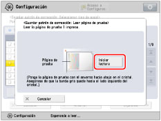 Si corrige el tono del color utilizando el patrón de corrección guardado, solamente podrá seleccionar el origen de papel que contenga el mismo tipo de papel que el utilizado para la página de prueba al guardar el patrón de corrección seleccionado.