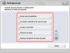 El botón [Acceso a Configurac.] podrá mostrarse en la parte superior de la pantalla o en la pantalla Menú principal. Para más información, consulte