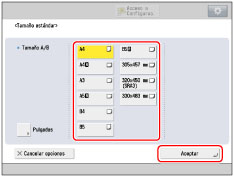 Para seleccionar el tamaño de papel en pulgadas, pulse [Pulgadas].