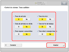 en el panel de control puede establecer diversos tonos para que suenen, según las operaciones realizadas o el estado del dispositivo.|