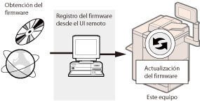 Puede actualizar el firmware del equipo a la versión más reciente con la función "Registrar/Actualizar software" de la IU remota.