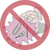 Tenga cuidado de no derramar líquido ni dejar caer ningún objeto (por ejemplo, clips, grapas, etc.) en el interior del equipo. Si cualquiera de estos objetos entra en contacto con piezas eléctricas del interior del equipo, se puede producir un cortocircuito que puede provocar un incendio o descargas eléctricas.