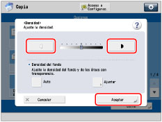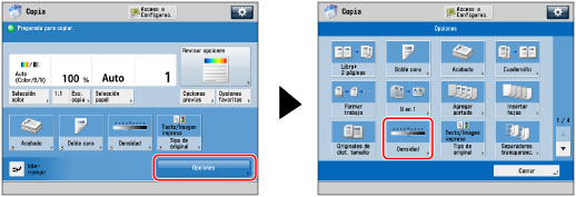 Si cambia la densidad en [Opciones], es posible que el ajuste de la densidad durante la copia no tenga ningún efecto en el resultado final.