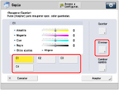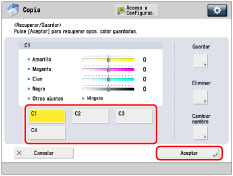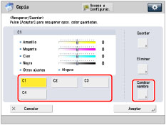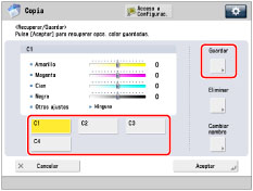 Seleccione una tecla ([C1] a [C4]) para guardar las opciones de balance de color → pulse [Guardar].