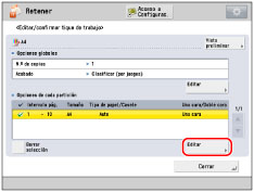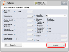Si se seleccionan varios intervalos de páginas y las opciones de cada intervalo de páginas son diferentes, se mostrará [Variado] para [Tamaño papel de impresión], y [Cada partición] o [Aplicar opciones de cada partición] para otras opciones.