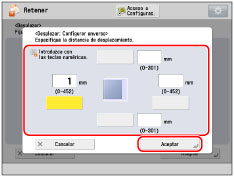 Si introduce un valor distinto de 0, puede cambiar entre anchuras de margen positivas y negativas pulsando [±].