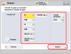 Si pulsa [Detalles], aparece la información detallada correspondiente al papel seleccionado.