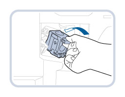 Introduzca con cuidado la caja de grapas de nuevo en la unidad de acabado hasta que quede correctamente instalada.