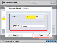Establezca el nombre de ámbito, si es necesario. Pulse [Nombre de ámbito] → introduzca el nombre de ámbito para usarlo con la detección multidifusión → pulse [Aceptar].