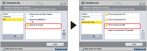 Pulse [Opciones de firewall] para [Red] → [Filtro de direcciones MAC].