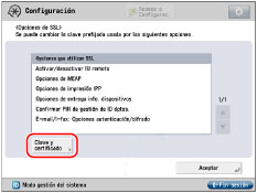 Pulse [Opciones de SSL] para [Opciones de TCP/IP] → [Clave y certificado].
