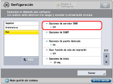 Pulse [Preferencias] → [Red] → [Opciones de servidor SMB].