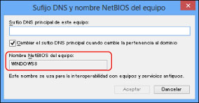 En el cuadro de diálogo [Sufijo DNS y nombre NetBIOS del equipo], confirme [Nombre NetBIOS del equipo].