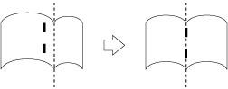 Si tanto los pliegues como los grapados no están en el centro del cuadernillo, ajuste primero la posición de grapado en [Cambiar pos. grapado/pliegue], y después ajuste la posición de pliegue en [Ajustar pos. plegado cuadern.].
