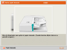 Si se produce un atasco de papel en el alimentador, no es posible seguir operando con el equipo. Siga las instrucciones de la pantalla táctil para eliminar el atasco de papel. (Consulte "Unidad Lectora Color Dúplex H1 (Opcional)".)