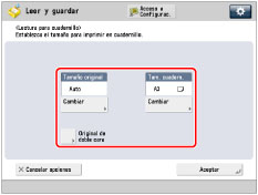 El equipo selecciona automáticamente la escala de zoom en función del tamaño de cuadernillo seleccionado.