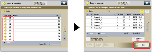Resulta útil guardar los originales en un buzón e imprimirlos después utilizando el modo Fusionar archivos si no puede preparar los originales a la vez o si desea especificar distintas opciones para cada original. (Consulte "Imprimir archivos guardados en un buzón".)