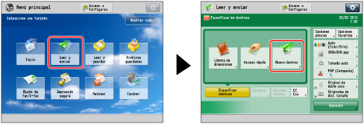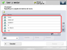 Tras poner en ON el interruptor principal, debe esperar a que transcurra el tiempo especificado en [Tiempo de espera de la conexión al inicio] antes de pulsar [Examinar]. La transmisión de red no es posible hasta que no transcurra este tiempo de inicio. (Consulte "Establecer el tiempo de espera de la conexión al inicio".)