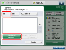 Puede efectuar un envío a una combinación máxima de 256 destinos [Para], CC y CCO simultáneamente.