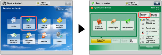 Puede guardar una serie de opciones de destino, lectura, o envío especificadas antes de pulsar