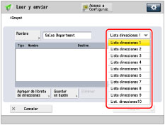 Si desea guardar una dirección de grupo, puede seleccionar únicamente destinos guardados en la misma lista de direcciones.