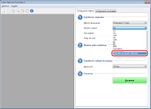Seleccione la opción [Originales de tamaño diferente] en [Tamaño original].