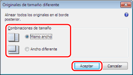 Seleccione la combinación adecuada para el tamaño de los originales. → haga clic en [Aceptar].