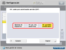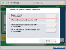 Utiliza la información de autenticación establecida en [Guardar servidor LDAP]. (Consulte "Guardar un servidor LDAP".) No se requieren más ajustes para cada usuario.