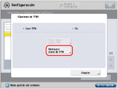 La seguridad que ofrece TPM no garantiza la protección completa de los datos y el hardware. Tenga en cuenta que Canon no se hace responsable de los fallos ni los perjuicios ocasionados por el uso de este modo.