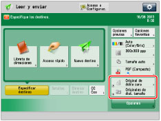 Puede guardar las teclas de acceso directo que se muestran en la pantalla Enviar. Puede guardar un máximo de dos botones desde [Opciones].